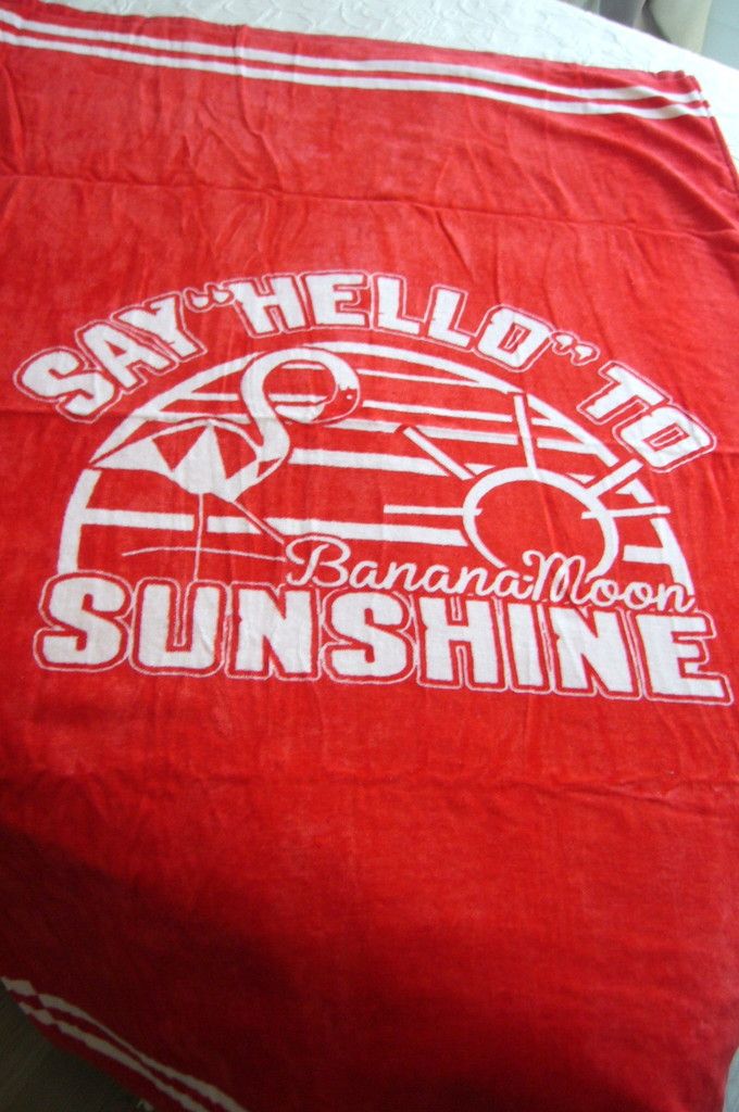 Et maintenant place à la pièce maîtresse de cette box ! Avec à l'honneur la marque Banana Moon ! Rien que ça !!!!!!!!! Je suis dingue d'avoir reçu ce magnifique drap de plage de cette célèbre marque ! Banana Moon c'est tout un univers plein de punch et vitaminée, décontracté, sexy et tendance, qui vous plonge en plein coeur de la Californie ! De la couleur, du soleil, du pep's ! Du prêt-à-porter de luxe reconnu internationalement pour la qualité de leurs produits. Un indispensable pour ce printemps et cet été !! Et c'est moi qui vais faire fureur sur la plage pendant mes vacances !!!!!!!! 100% coton et ultra-absorbant, ce drap de bain aux finitions parfaites sèche votre peau tout en douceur, avec son inscription " Say Hello to Sunshine " je suis presque déjà au soleil !!! Livré avec son sac très pratique, Valeur 59.90 €