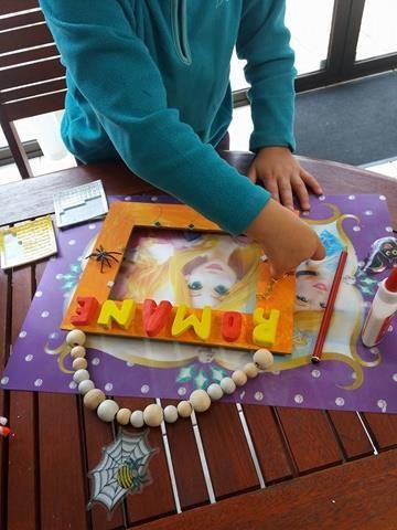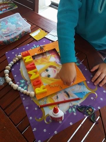 Ensuite poupette a choisi des décorations à coller sur le cadre.